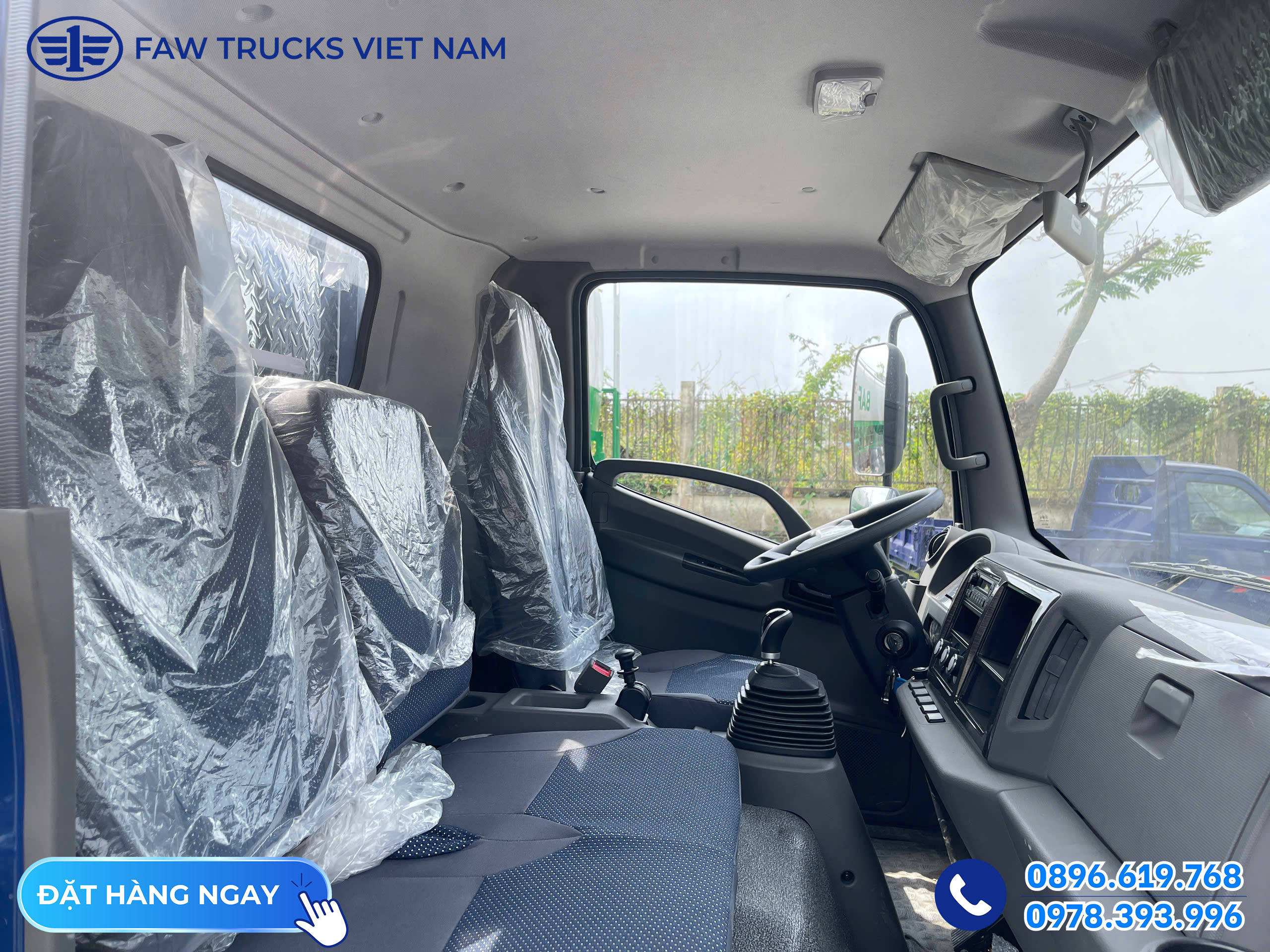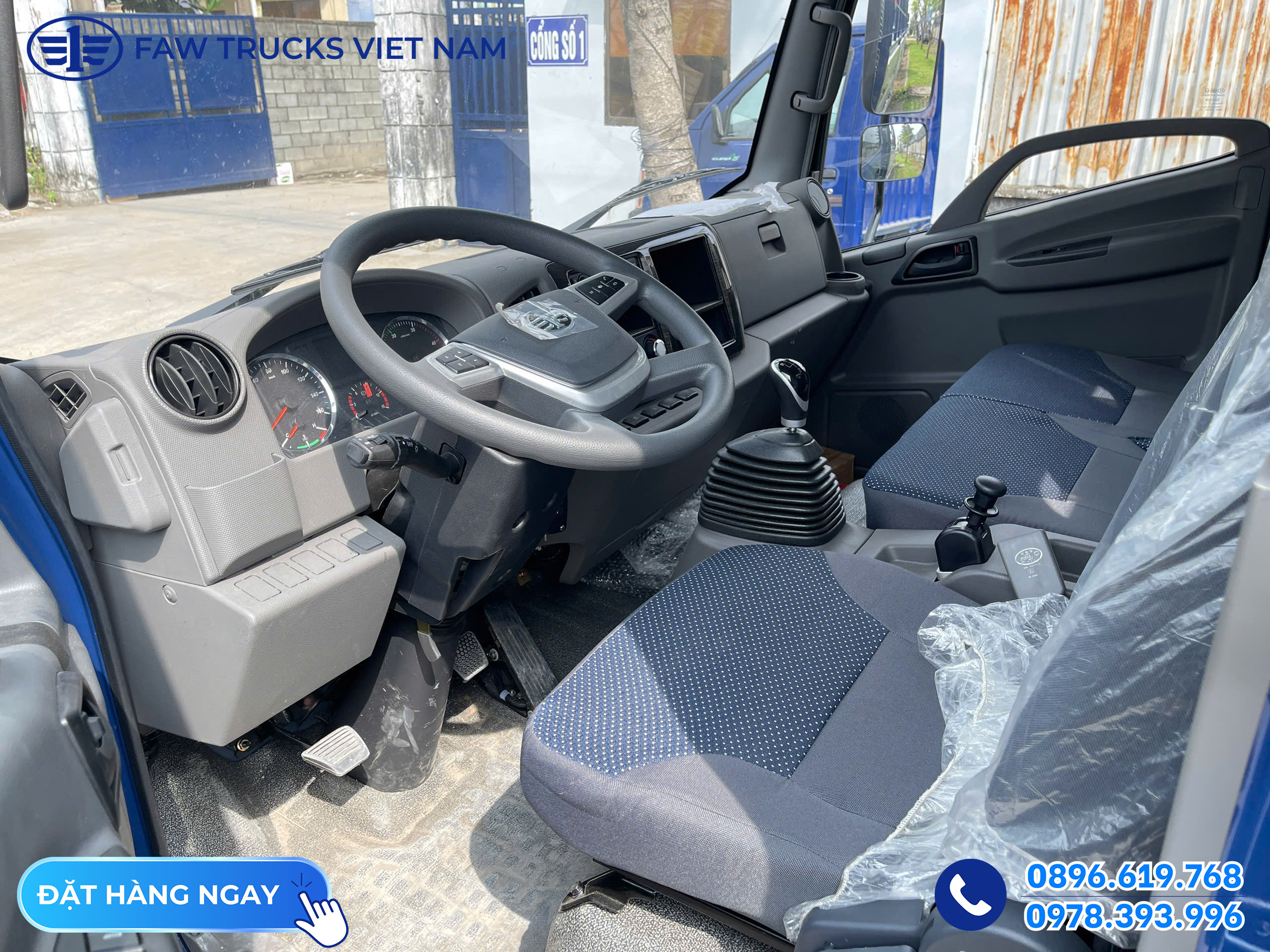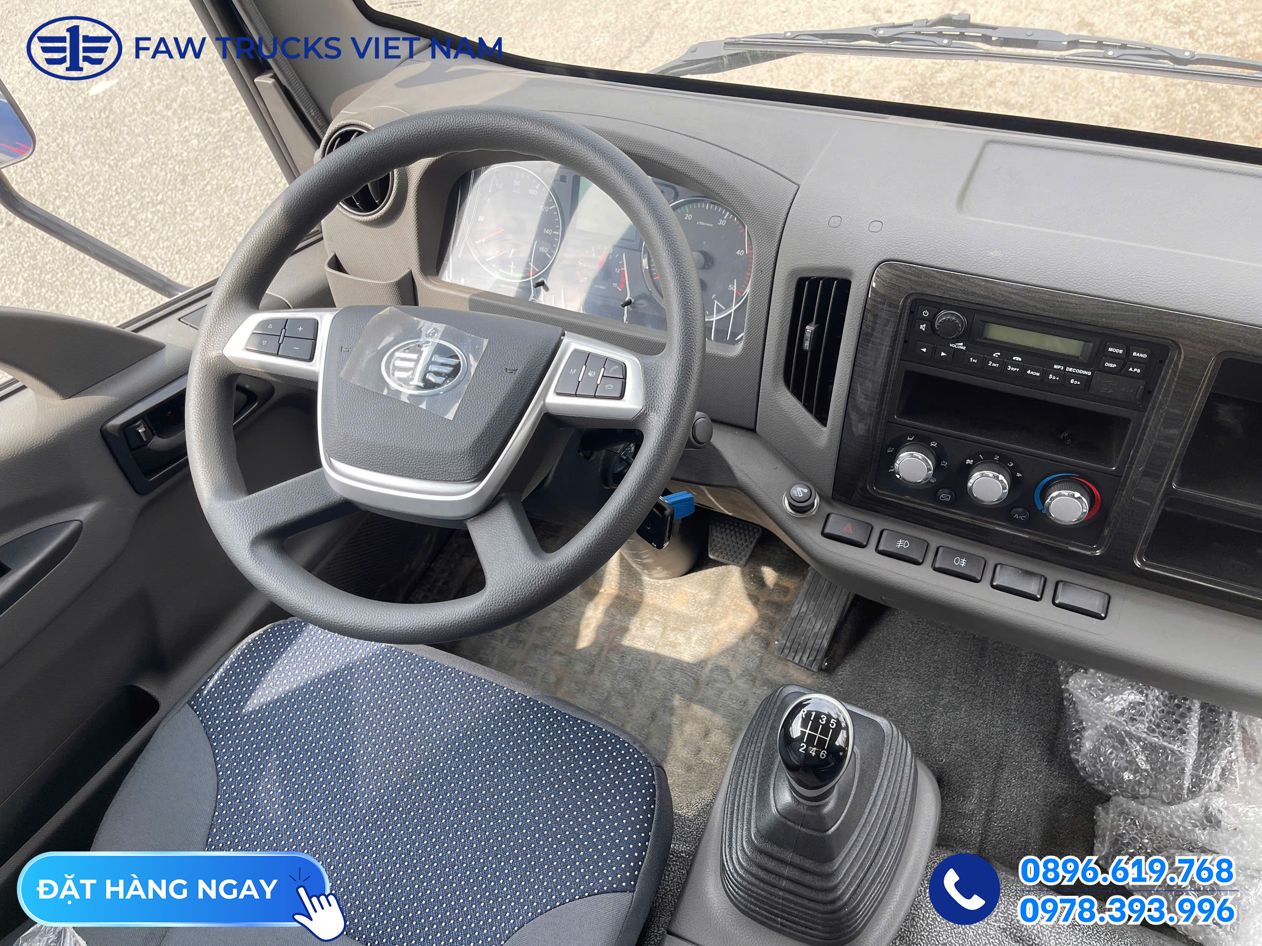 Các thiết bị lái xe đều hiện đại với Vô lăng 4 chấu, tay số loại ngắn, tay phanh lốc kê, khóa điện kinh chỉnh điện xe Faw còn trang bị FM RADIO, máy lạnh đa chiều.